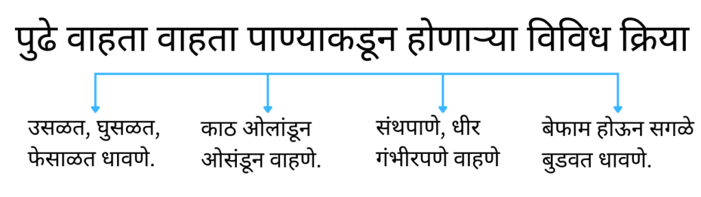 थोडक्यात, पाण्याचा स्वभाव सदैव प्रवाही, अडथळ्यांवर मात करणारा आणि सृजनशील असा आहे.