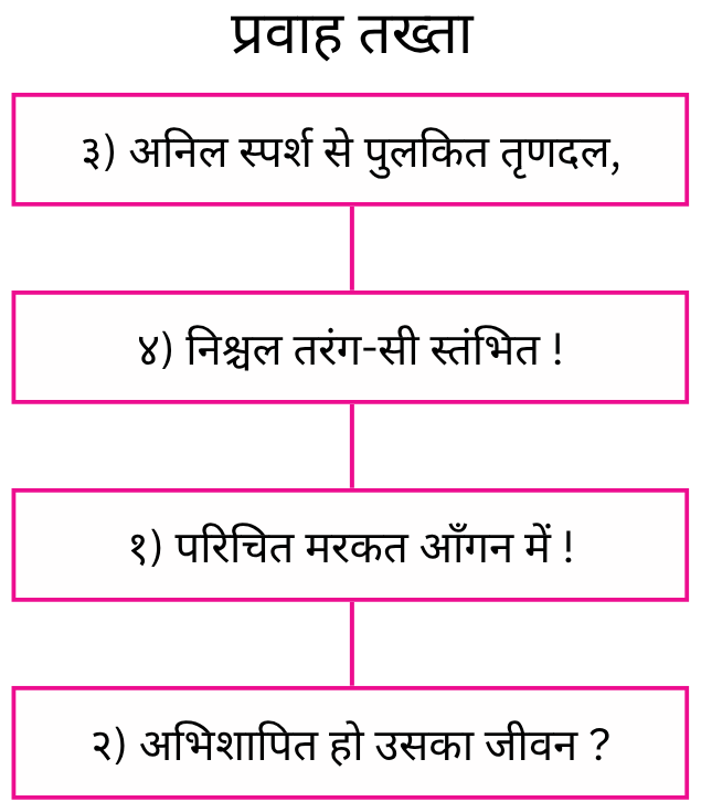 ख) कविता की पंक्तियों को उचित क्रमानुसार लिखकर प्रवाह तख्ता पूर्ण कीजिए :