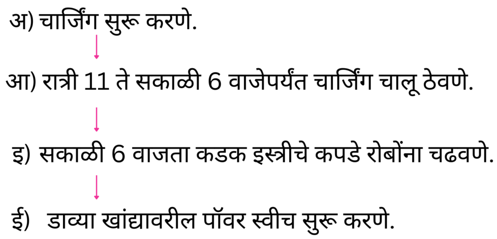 3) रोबोंना कामे करण्यासाठी सज्ज करण्याच्या कृतींच्या घटनाक्रमाचा ओघतक्ता तयार करा.