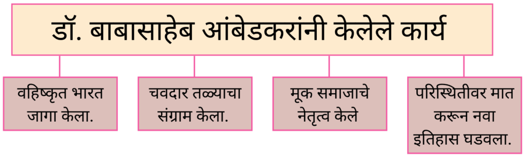 इ) अगाध ज्ञानाच्या बळावर डॉ. बाबासाहेब आंबेडकर यांनी केलेले कार्य, तुमच्या शब्दांत थोडक्यात लिहा.