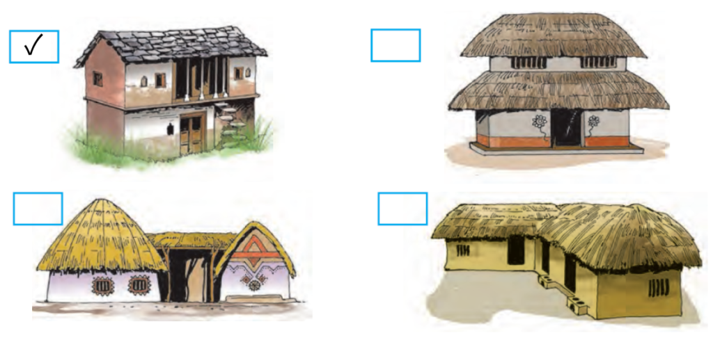 १. अ) पर्वतीय प्रदेशात खालीलपैकी कोणते घर योग्य ठरेल ? योग्य ठिकाणी ‘✓’ करा. त्यामागचे कारण लिहा.