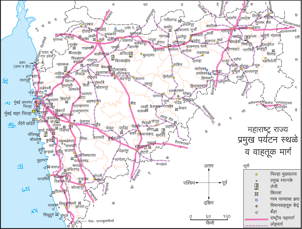 प्रश्न. 6. महाराष्ट्रातील पर्यटन स्थळांचा नकाशा दिला आहे. त्याच्या आधारे खालील प्रश्नांची उत्तरे लिहा.