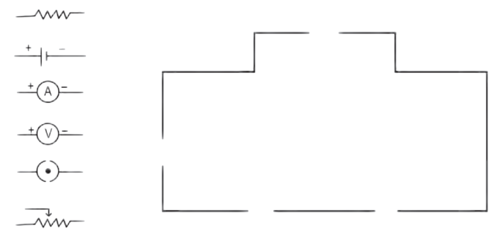 2. विद्युत परिपथात जोडल्या जाणाऱ्या घटकांची चिन्हे तक्त्यात दिली आहेत. ती आकृतीत योग्य ठिकाणी जोडून परिपथ पूर्ण करा.