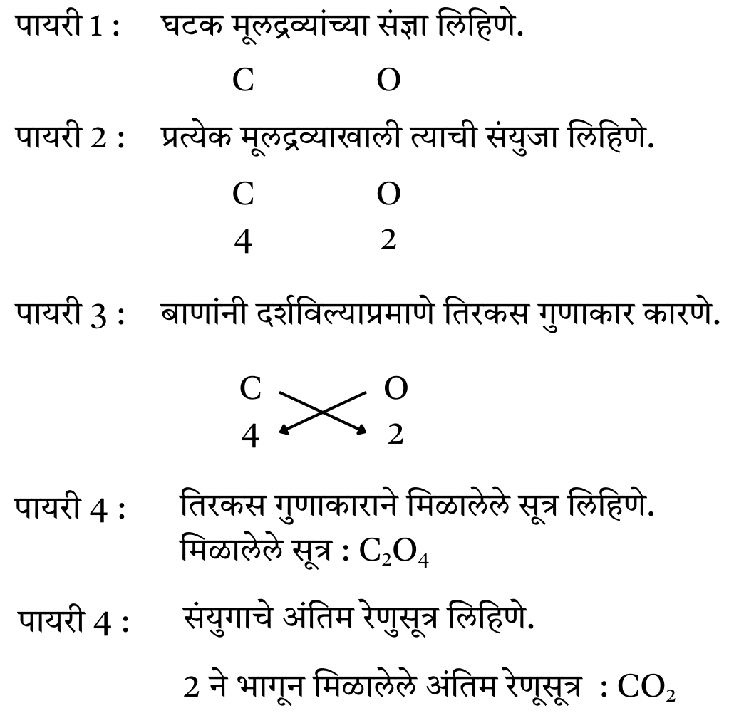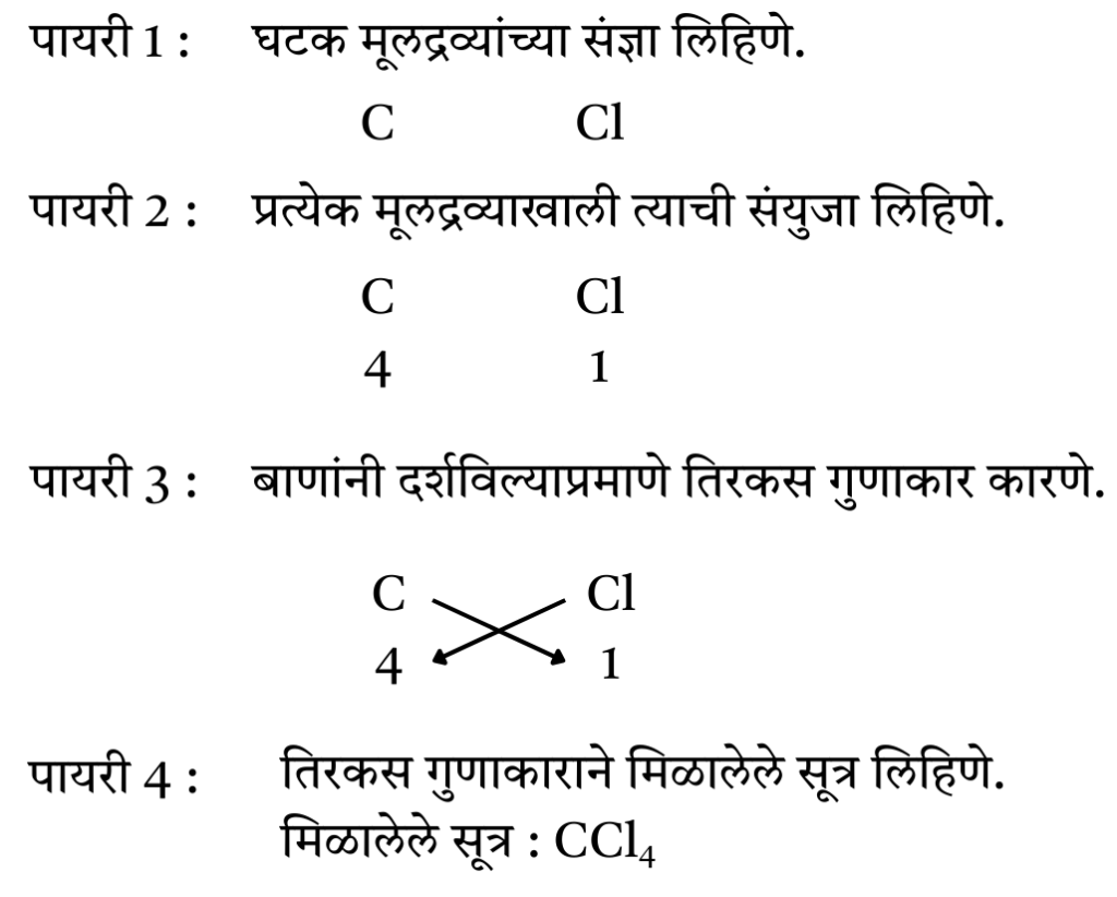 स्पष्टीकरण : कार्बनची संयुजा 4 असून इतर सर्व मूलद्रव्यांची संयुजा 1 आहे.