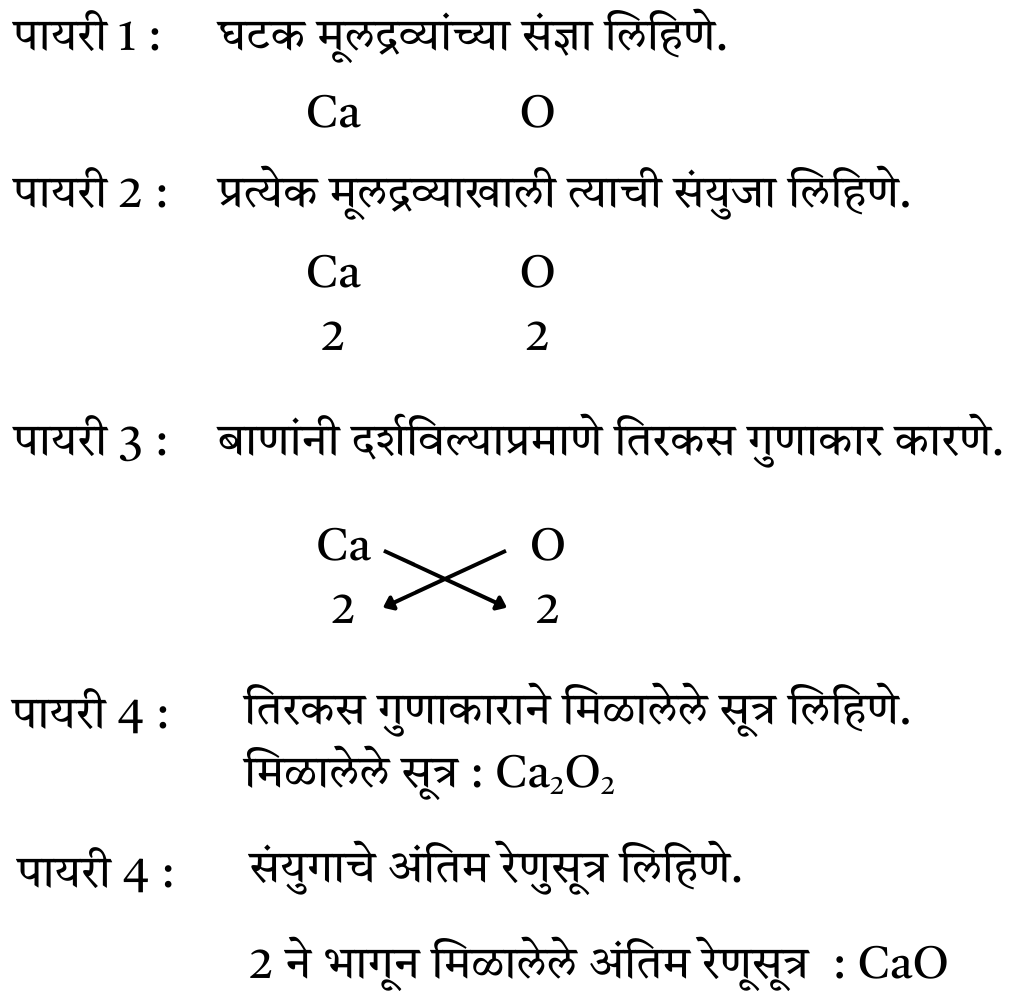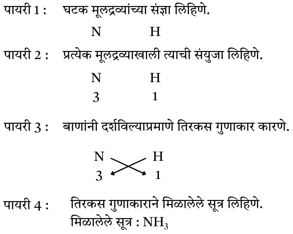5. पुढे दिलेल्या रेणुसूत्रांवरून त्या त्या संयुगातील घटक मूलद्रव्यांची नावे व संज्ञा लिहा व त्यांच्या संयुजा ओळखा.