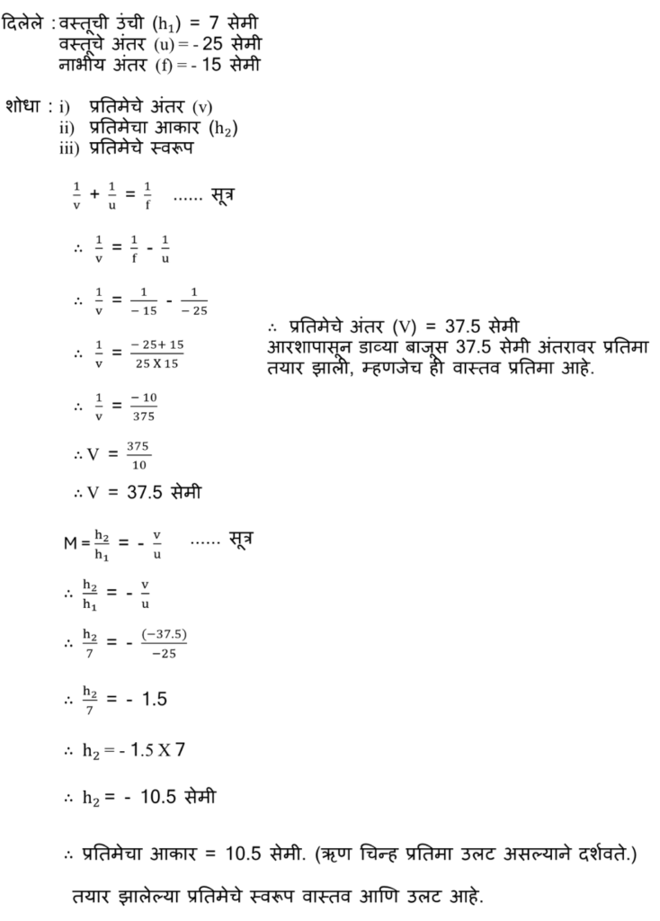 प्रकाशाचे परावर्तन स्वाध्याय इयत्ता नववी
