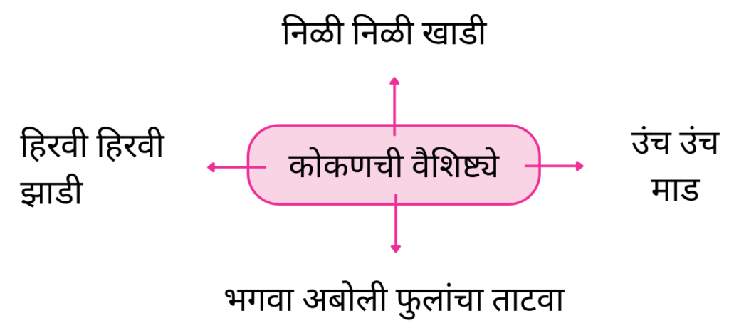 | ग. दि. माडगूळकर | गोमू माहेरला जाते | गोमू, तिचा नवरा, नाखवा | खाडी, झडी, फुलांचा ताटवा, कोकणची माणसे, माड, वारा |