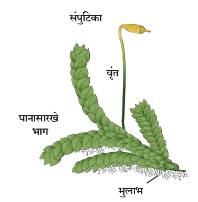 | ब्रायोफायटा | या वनस्पतींना प्रजननासाठी पाण्याची गरज असते. | मॉस |