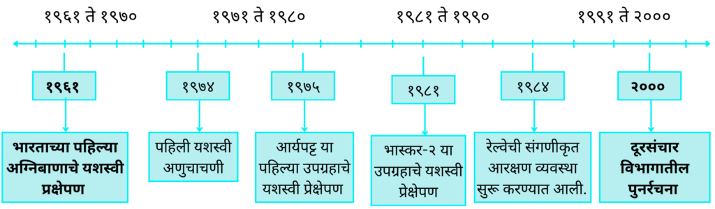 भारताच्या विज्ञान, तंत्रज्ञान क्षेत्रांतील प्रगतीची कालरेषा दशकानुसार तयार करा.