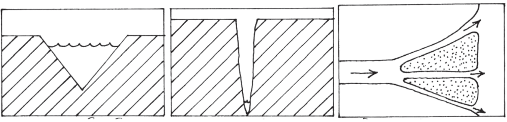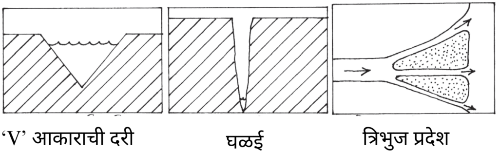 अ. संचयन – ‘V’ आकाराची दरी